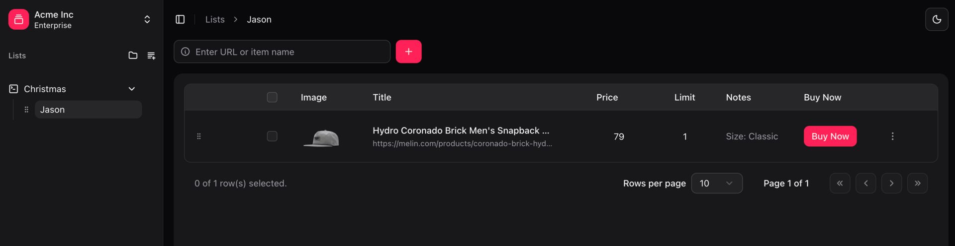 A screenshot of my work in progress list app. Built with Next.js, shadcn/ui, Better Auth, and a heavy helping of Claude Code and GitHub Copilot